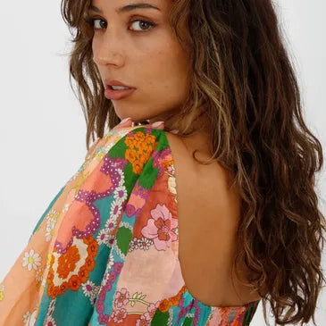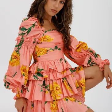ZIMMERMANN - Tropicana Plunge Mini dress - Peach Floral - Size 0 / Size 8 AU